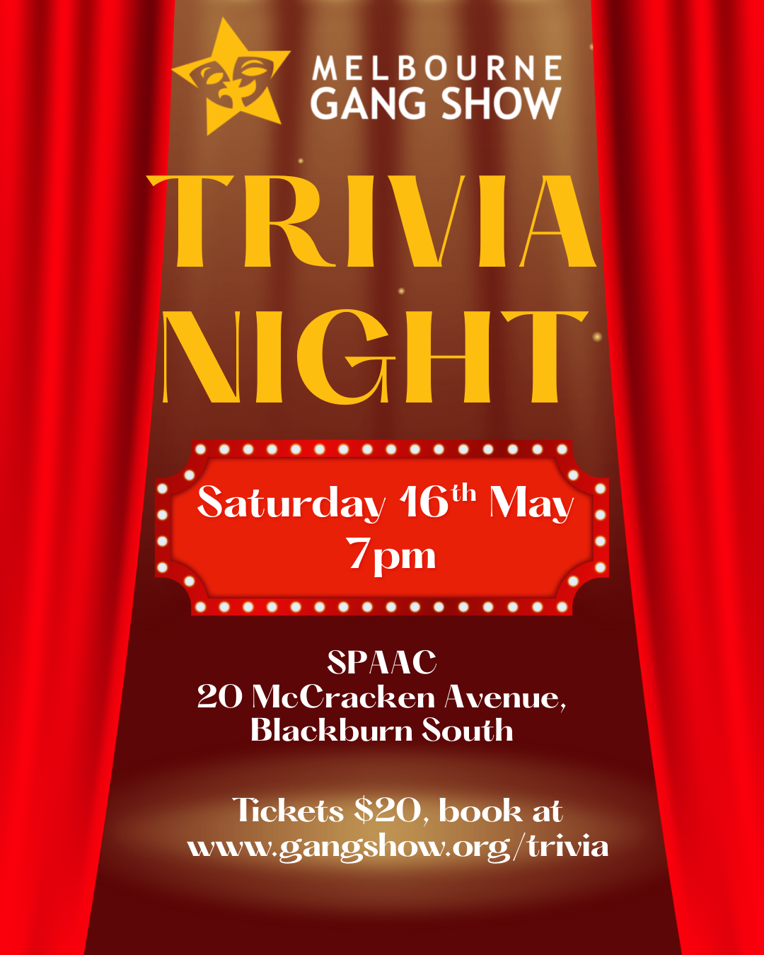 The cast and crew of Melbourne Gang Show are thrilled to invite you to an unforgettable evening of friendly competition and brain busting fun at our upcoming Trivia Night!